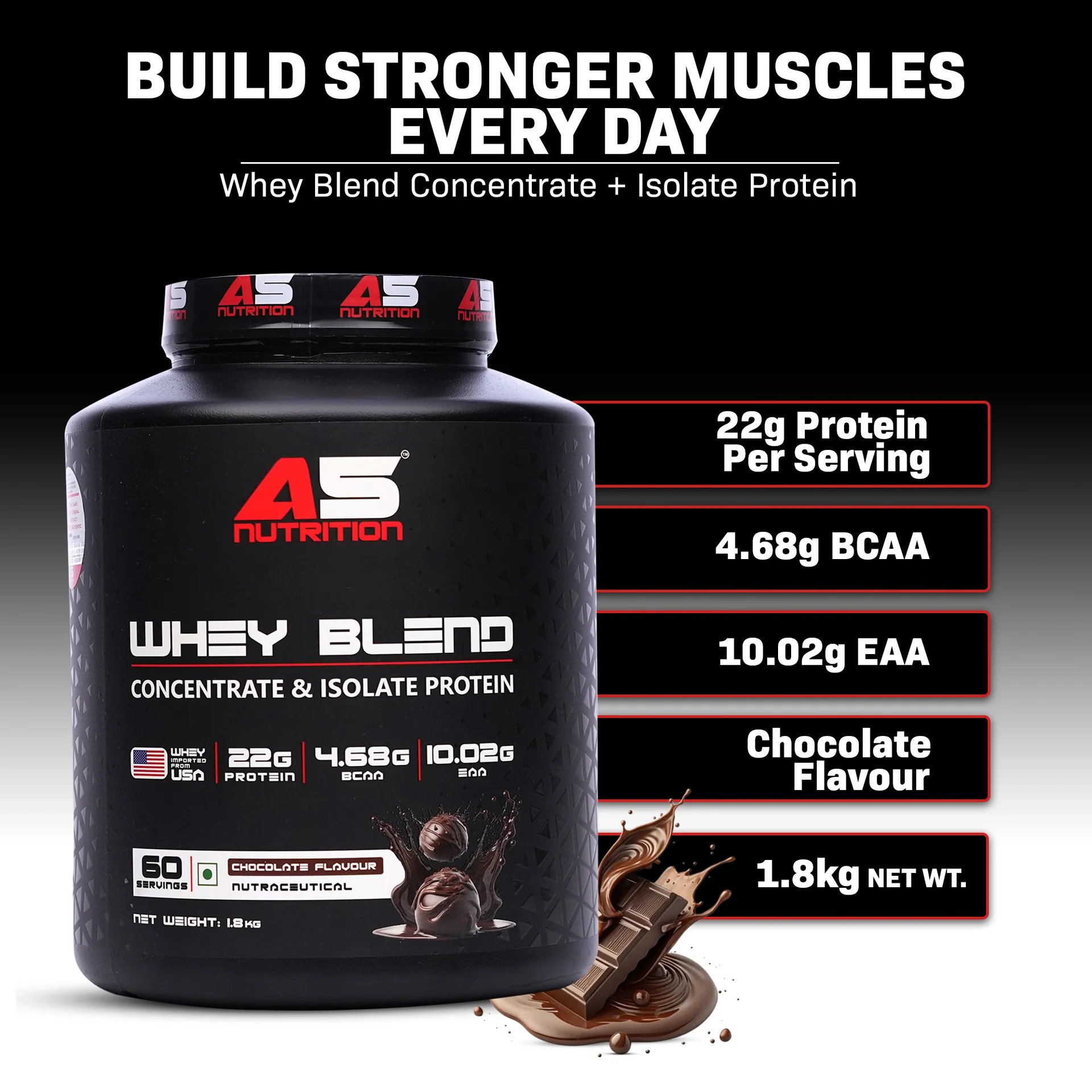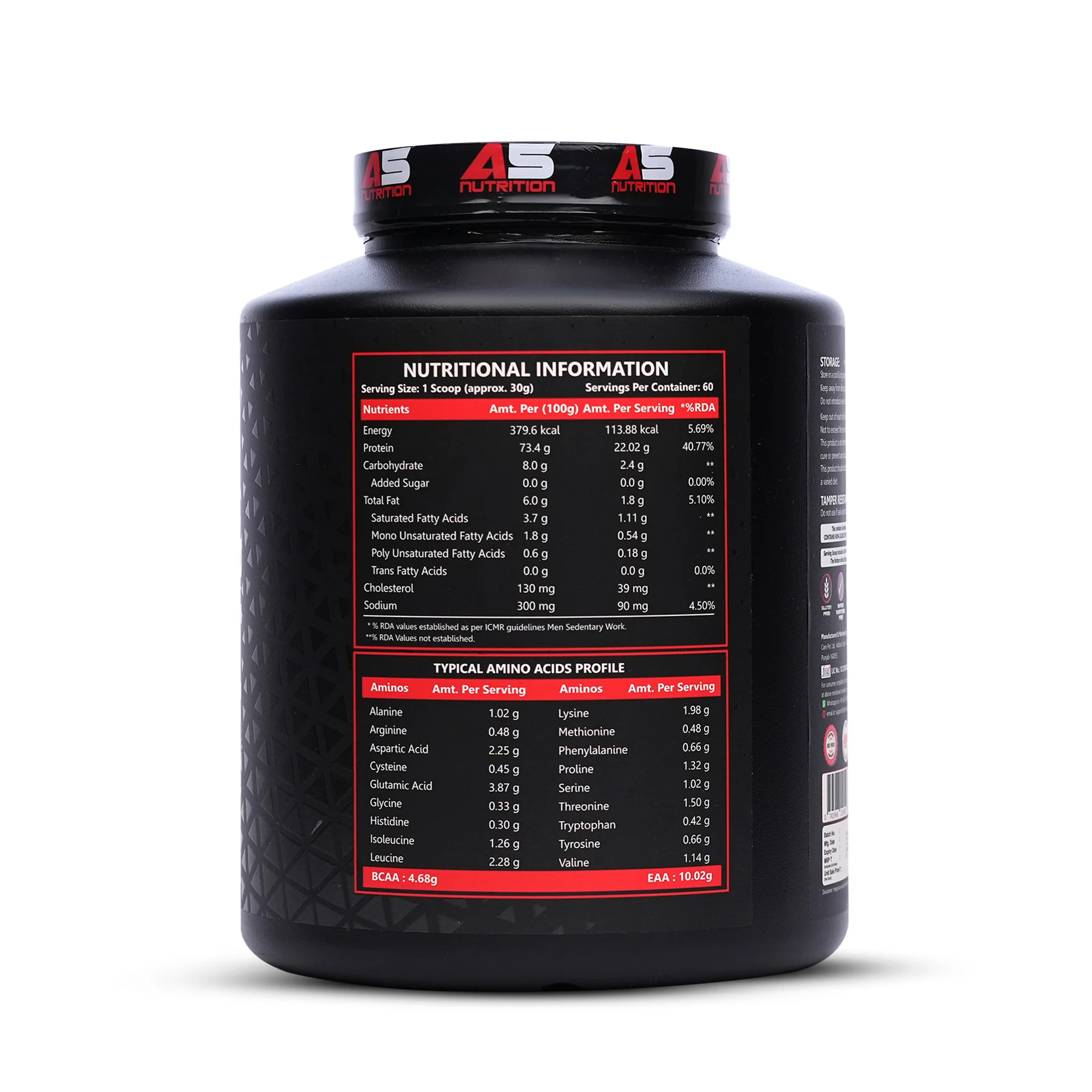 Each serving provides 22 g of protein, along with 4.68 g BCAAs and 10.02 g EAAs, which play an essential role in muscle protein synthesis and workout recovery.